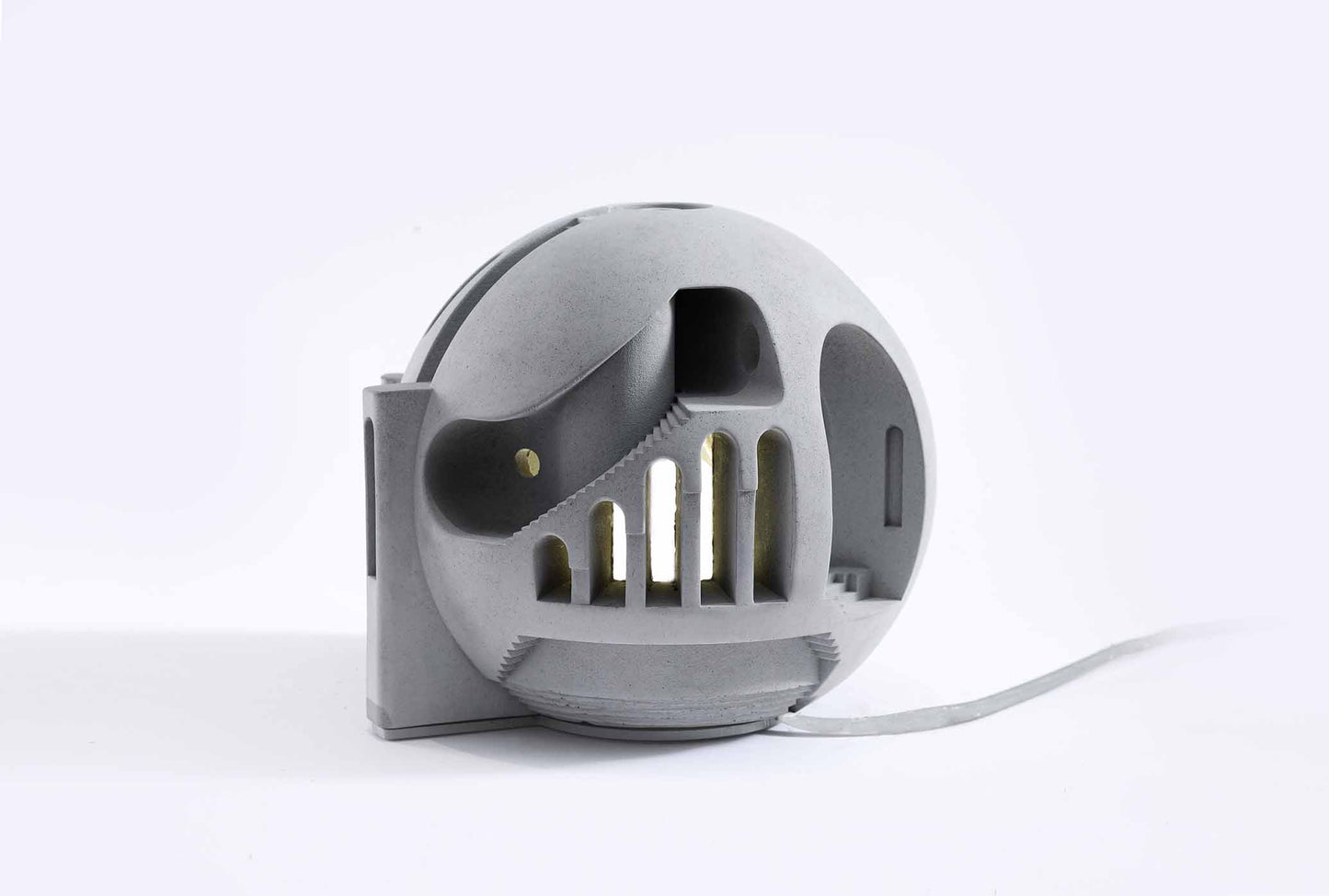 The most fascinating part of these lights is the subtle light that oozes out of the architectural orifices and openings in the lamps. It is fascinating how the architectural elements of the lamp cast shadows on their own surfaces and on surrounding spaces.
