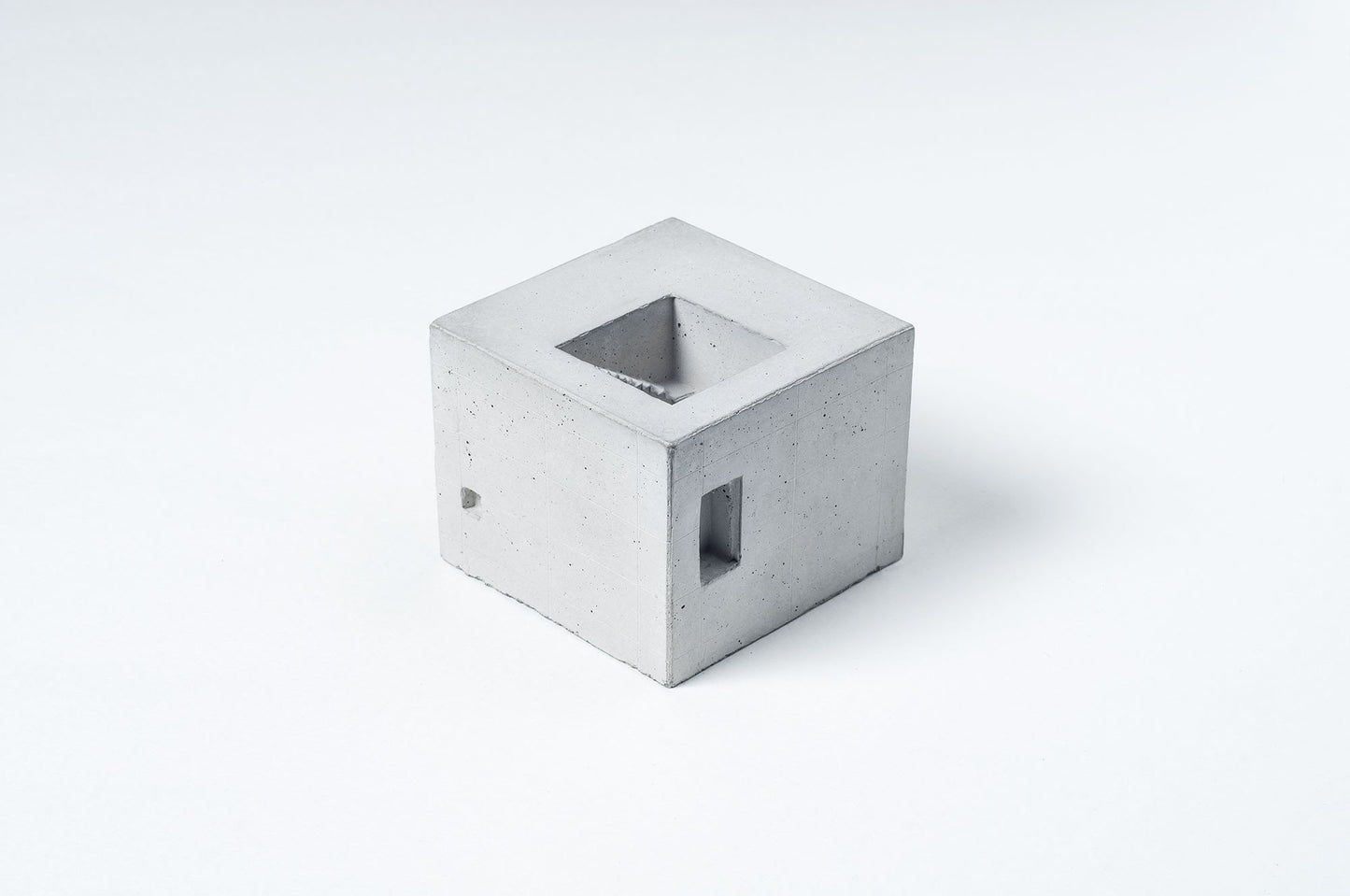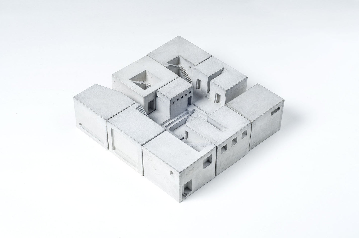 Inspired by the best and most influential concrete architecture of the last century, these miniature concrete homes are designed to advocate and celebrate concrete's beauty efficacy and its incalculable contribution to creating and defining spaces in the modern life. Each piece is an individually complete space defined by volumes and voids that give the human imagination a glimpse into what could be lying inside. The nine concrete pieces come together to form a set that can be put together around the central 'Kund' to create a community space.